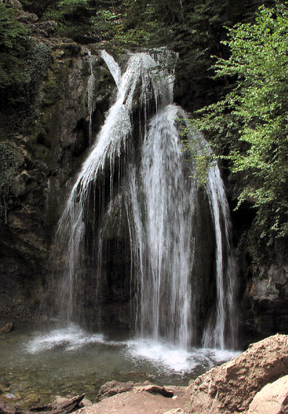 Водопад расположен на высоте 468 метров над уровнем моря. Выше по течению - каскады с живописными ваннами кристально чистой воды. Говорят, что там водится горная форель. Но, похоже, к нашему визиту её всю выловили голодные туристы :-(