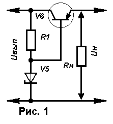 Для получения более постоянного напряжения на нагрузке при изменении потребляемого тока к выходу выпрямителя подключают стабилизатор, который может быть выполнен по схеме, приведенной на рис. 1. В таком устройстве работают стабилитрон V5 и регулирующий транзистор V6. Расчет позволит выбрать все элементы стабилизатора, исходя из заданного выходного напряжения Uн и максимального тока нагрузки Iн. Однако оба эти параметра не должны превышать параметры уже рассчитанного выпрямителя. А если это условие нарушается, тогда сначала рассчитывают стабилизатор, а затем - выпрямитель и трансформатор питания. Расчет стабилизатора ведут в следующем порядке.