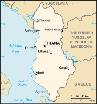 Southeastern Europe, bordering the Adriatic Sea and Ionian Sea, between Greece and the Federal Republic of Yugoslavia