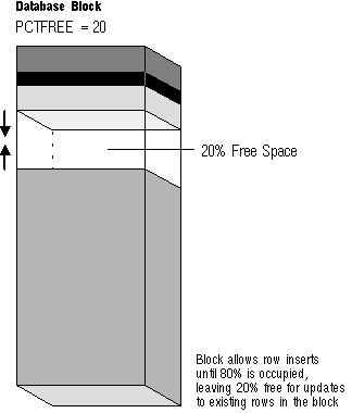 This states that 20% of each data block used for this table's data segment will be kept free and available for possible updates to the existing rows already within each block. Figure 3 - 3 illustrates PCTFREE.