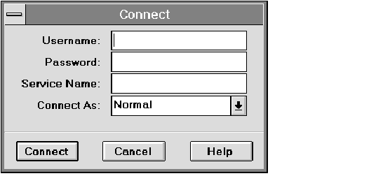 | Connect As | Pop-up menu containing Normal, SYSOPER, and SYSDBA for Oracle7 release 7.1 or later. Only Normal is allowed for release 7.0. |