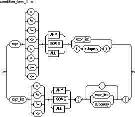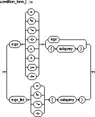A condition specifies a combination of one or more expressions and logical operators that evaluates to either TRUE, FALSE, or unknown. You must use this syntax whenever condition appears in SQL commands in Chapter 4, "Commands".