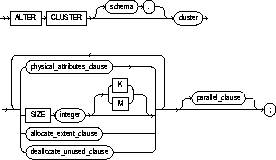 determines how many cluster keys will be stored in data blocks allocated to the cluster. You can change the SIZE parameter only for an indexed cluster, not for a hash cluster. For a description of the SIZE parameter, see CREATE CLUSTER. |