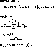 retrieves the rows affected by the UPDATE statement. You can only retrieve scalar, LOB, ROWID, and REF types. See also "The RETURNING Clause". |