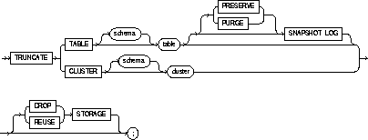 TRUNCATE TABLE emp PRESERVE SNAPSHOT LOG; TRUNCATE TABLE stock;