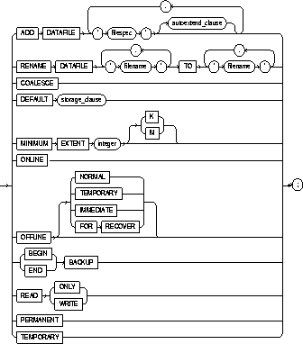 specifies one of the datafiles in the cluster's tablespace to contain the new extent. If you omit this parameter, Oracle chooses the datafile. |