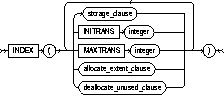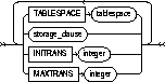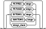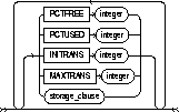 changes the values of the PCTUSED, PCTFREE, INITRANS, and MAXTRANS parameters of the cluster. See CREATE CLUSTER. |