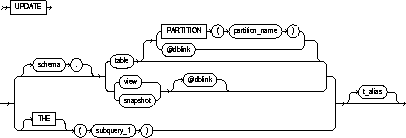 is a complete or partial name of a database link to a remote database where the table or view is located. For information on referring to database links, see "Referring to Objects in Remote Databases". You can use a database link to update a remote table or view only if you are using Oracle's distributed functionality. |