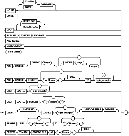 You can use the following options only when the database is not mounted by your instance: |