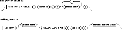 CREATE TABLE emp (emp_no NUMBER(5), dept VARCHAR2(2), name VARCHAR2 (30)) STORAGE (INITIAL 100K NEXT 50K) LOGGING PARTITION BY RANGE (emp_no) ( PARTITION acct VALUES LESS THAN (1000) TABLESPACE ts1, PARTITION sales VALUES LESS THAN (2000) TABLESPACE ts2 PARTITION educ VALUES LESS THAN (3000) ); INSERT INTO EMP VALUES (1226, 'sa', 'smith'); INSERT INTO EMP VALUES (2100, 'ed', 'jones');