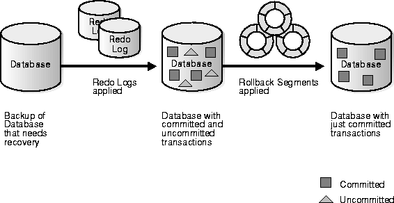 To solve this dilemma, two separate steps are generally used by Oracle for a successful recovery of a system failure: rolling forward with the redo log and rolling back with the rollback segments.