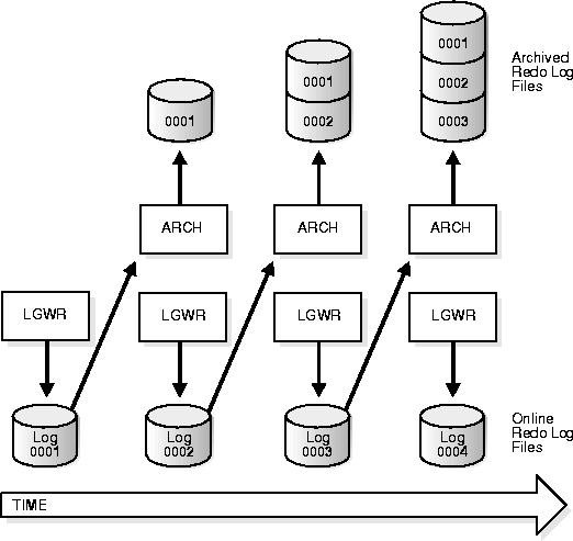 Optionally, you can configure an Oracle database to archive files of the online redo log once they fill. The online redo log files that are archived are uniquely identified and make up the archived redo log. By archiving filled online redo log files, older redo log information is preserved for more extensive database recovery operations, while the pre-allocated online redo log files continue to be reused to store the most current database changes.