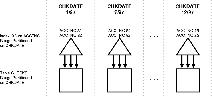 Of course, if there is also a predicate on the partitioning columns then multiple index probes might not be necessary. Oracle takes advantage of the fact that a local index is equipartitioned with the underlying table to prune partitions based on the partition key. For example, if the predicate in Figure 9-5 is CHKDATE<3/97, Oracle only has to probe two partitions.