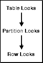 Partition locks fall between table locks and row locks in the DML locking hierarchy, as shown in Figure 9-7.
