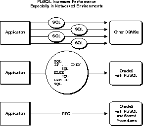 PL/SQL can also cooperate with Oracle8 application development tools such as Oracle Forms and Oracle Reports. By adding procedural processing power to these tools, PL/SQL boosts performance. Using PL/SQL, a tool can do any computation quickly and efficiently without calling on Oracle8. This saves time and reduces network traffic. For more information, see Chapter 6, "Using Embedded PL/SQL" and the PL/SQL User's Guide and Reference.
