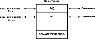 When a data manipulation statement is executed, its associated cursor is linked to an entry in the cursor cache. The cursor cache is a continuously updated area of memory used for cursor management. The cursor cache entry is in turn linked to a private SQL area.