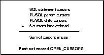 The maximum number of cursors your program can use simultaneously is set by the Oracle initialization parameter OPEN_CURSORS. Figure 6-1 shows you how to calculate the maximum number of cursors in use: