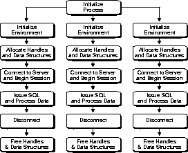 Once OCIInitialize() has been called, an application must call OCIEnvInit() to initialize the OCI environment handle. Following this step, the application has two options for establishing a server connection and beginning a user session: Single User, Single Connection; or Multiple Sessions or Connections.