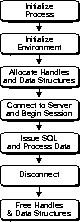 Figure 2-1 illustrates the flow of steps in an OCI application. Each step is described in more detail in the section "OCI Programming Steps" on page 2-16.