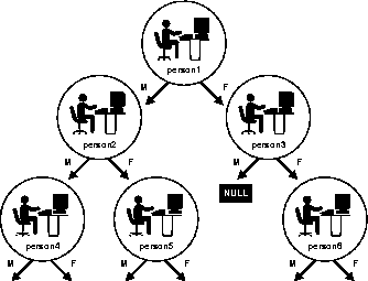 Instances of the person_t type can now be stored in the typed table. Each instance of person_t includes references to two other objects, which would also be stored in the table. A NULL reference could represent a parent about whom information is not available.