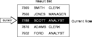 The set of rows returned by a multi-row query is called the result set. Its size is the number of rows that meet your search criteria. As Figure 1-2 shows, an explicit cursor "points" to the current row in the result set. This allows your program to process the rows one at a time.