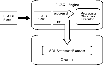 These two environments are independent. PL/SQL might be available in the Oracle server but unavailable in tools, or the other way around. In either environment, the PL/SQL engine accepts as input any valid PL/SQL block or subprogram. Figure 1-4 shows the PL/SQL engine processing an anonymous block. The engine executes procedural statements but sends SQL statements to the SQL Statement Executor in the Oracle server.