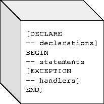 As Figure 1-1 shows, a PL/SQL block has three parts: a declarative part, an executable part, and an exception-handling part. (In PL/SQL, a warning or error condition is called an exception.) Only the executable part is required.