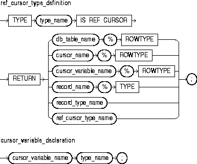 This construct declares a cursor variable. For the syntax of cursor_variable_declaration, see "Cursor Variables".