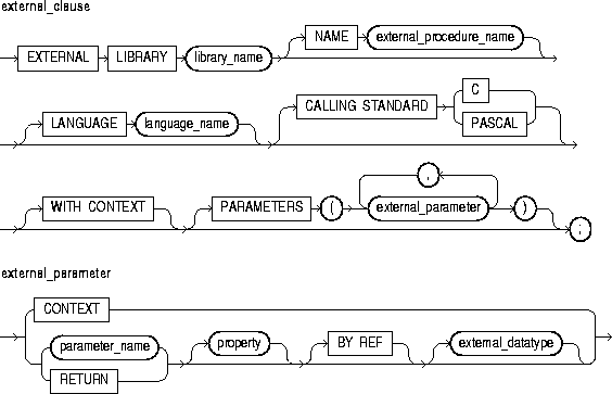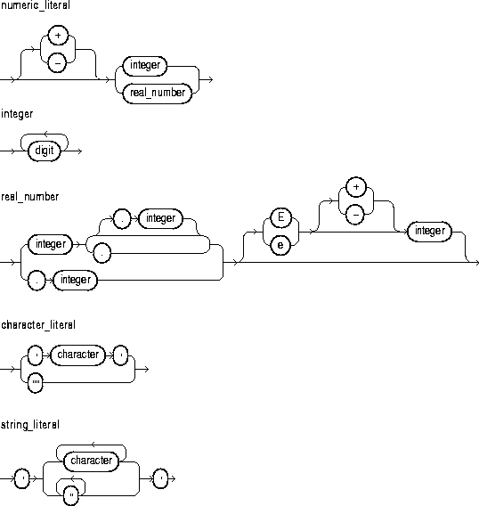 Each diagram defines a syntactic element. Every path through the diagram describes a possible form of that element. Follow in the direction of the arrows. If a line loops back on itself, you can repeat the element enclosed by the loop.