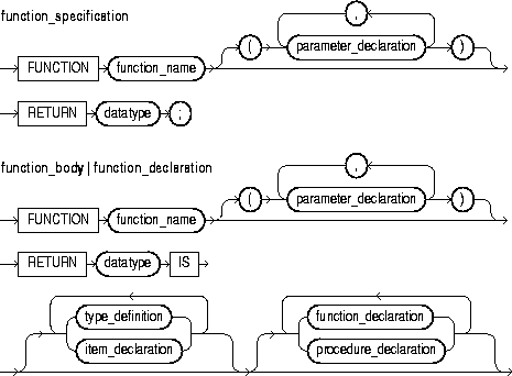 This construct declares a function. For the syntax of function_declaration, see "Functions".