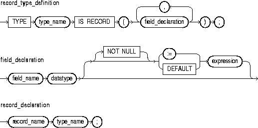 This construct declares a user-defined record. For the syntax of record_declaration, see "Records".