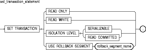 The SET TRANSACTION statement begins a read-only or read-write transaction, establishes an isolation level, or assigns the current transaction to a specified rollback segment. Read-only transactions are useful for running multiple queries against one or more tables while other users update the same tables. For more information, see "Using SET TRANSACTION".