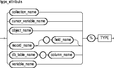 The %TYPE attribute provides the datatype of a field, record, nested table, database column, or variable. You can use the %TYPE attribute as a datatype specifier when declaring constants, variables, fields, and parameters. For more information, see "Using %TYPE".