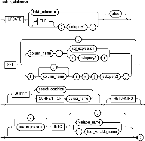 This is a select statement that provides a value or set of values to the UPDATE statement. Its syntax is like that of select_into_statement without the INTO clause. See "SELECT INTO Statement".