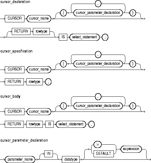 This construct declares an explicit cursor. For the syntax of cursor_declaration, see "Cursors".