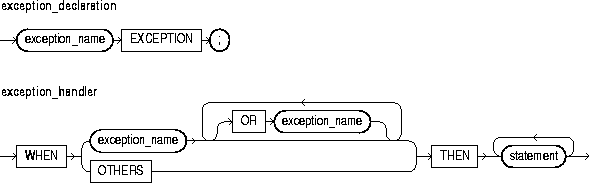 This construct associates an exception with a sequence of statements, which is executed when that exception is raised. For the syntax of exception_handler, see "Exceptions".
