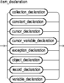 This construct declares a variable. For the syntax of variable_declaration, see "Constants and Variables".