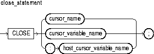 The CLOSE statement allows resources held by an open cursor or cursor variable to be reused. No more rows can be fetched from a closed cursor or cursor variable. For more information, see "Managing Cursors".