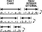 Figure 3-3 shows variable length records containing one varying-length character field and one varying-length integer field. In this format, the length of each field and record can vary. For example, in each record the first field may be specified to hold a character string, separated by a space from the next field, which may be specified to hold an integer.