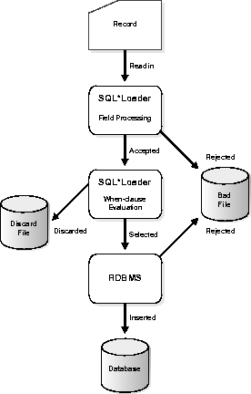 After a record is accepted for processing by SQL*Loader, a row is sent to Oracle8 for insertion. If Oracle determines that the row is valid, then the row is inserted into the database. If not, the record is rejected, and SQL*Loader puts it in the bad file. The row may be rejected, for example, because a key is not unique, because a required field is null, or because the field contains invalid data for the Oracle datatype.