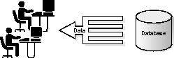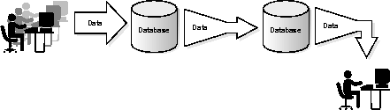 In this example, both systems could use the same database, but the conflicting goals of OLTP and data warehousing cause performance problems for both parts of the system. To solve this problem, an OLTP database stores the data gathered by the retail stores, then an image of that data is copied into a second database, which is queried by the data warehousing application. This configuration slightly compromises the goal of accuracy for the data warehousing application (the data is copied only once per day), but the trade-off is significantly better performance from both systems.