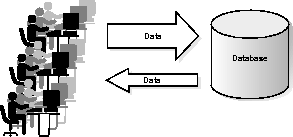 Data warehousing applications distill large amounts of information into understandable reports. Typically, decision support applications perform queries on the large amount of data gathered from OLTP applications. Decision makers in an organization use these applications to determine what strategies the organization should take, based on the available information. Figure 5-2 illustrates the interaction between a decision support application and an Oracle Server.