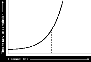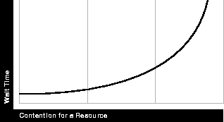 The service time for a task may stay the same, but wait time will go up as contention increases. If many users are waiting for a service that takes 1 second, the tenth user must wait 9 seconds for a service that takes 1 second.