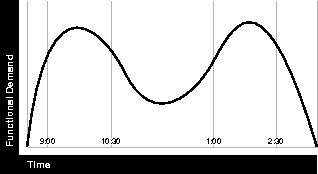 For example, if your system's busiest times are from 9:00 AM until 10:30, and from 1:00 PM until 2:30, you can plan to run batch jobs in the background after 2:30, when more capacity is available. In this way you can spread out the demand more evenly. Alternatively, you can allow for delays at peak times.
