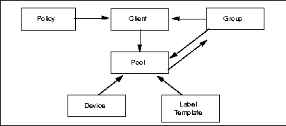 As mentioned in the section "LSM Architecture", the LSM Server can only perform the Oracle backup operations after you have properly configured the required LSM resources. A client type of resource must exist identifying the Oracle Server as the LSM backup client. You must configure a server resource, identifying the LSM Server and specifying the parallelism or maximum number of concurrent data streams. The server resource also specifies the users who belong to the LSM Administrator list-those users having sufficient privilege to modify the LSM configuration. You must have a separate device type of resource configured for each Oracle backup device used by the LSM Server. And, you must have a storage volume labeled and mounted in each device to be used for backup. When labeling a volume, LSM assigns the volume to a volume pool, for which a pool type of resource must exist.