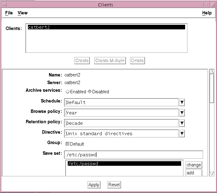 On a UNIX system, the Clients window is displayed as shown in Figure 2-5.