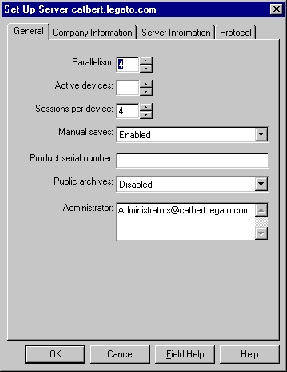 The Server window on UNIX or Set Up Server dialog box on Windows lists the attribute settings of the server resource. The only attribute in this server resource that you can modify is the Administrator attribute. The main attributes of the server resource are as follows:
