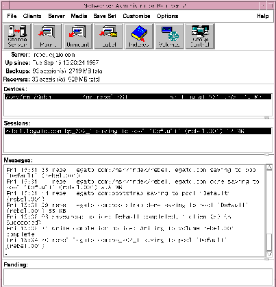 The following example shows the types of messages displayed in the Sessions and Messages sections of the main LSM Administrator window on UNIX during Oracle backups.