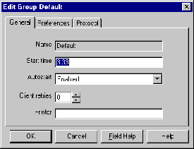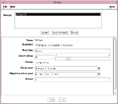 Finally, check the Default group resource configuration. Open the Groups window by one of the following methods, depending on the type of system running the GUI: