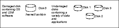 When a disk with the operating system and LSM binaries has been damaged or completely destroyed, you need to replace the damaged disk and reinstall both the operating system and the LSM software. If the disk was not completely destroyed and the operating system or LSM is still operational, use only those steps in this section that apply to your situation.